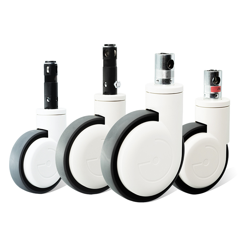 66系列是配有中心鎖定、全鎖定的豪華中控腳輪, 精鋼壓制框架主體,精密滾珠軸承位于旋轉頭內,輪架配有合成材料制的輪蓋, 適用鎖定控制桿配 有凸輪孔的輪桿,選配長桿和短桿式. 聚酰胺制輪芯, 熱塑性彈性體注塑輪胎面, 精密滾珠軸承,密封結構防水防油防纏繞。